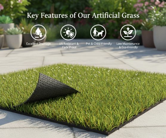 - Uneven patches and mud with natural grass – artificial grass stays neat and uniform.